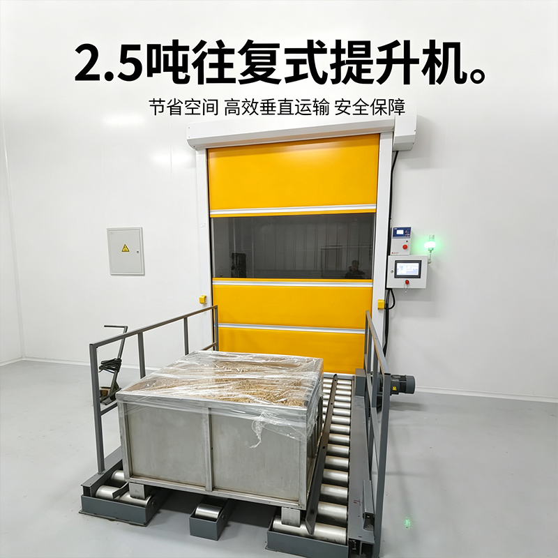 往复式提升机,也叫提升机,升降机,是由链条带动,通过变频调速控制电机,控制提升轿厢上下往复运动,实现货物上下输送。往复式提升机相对曳