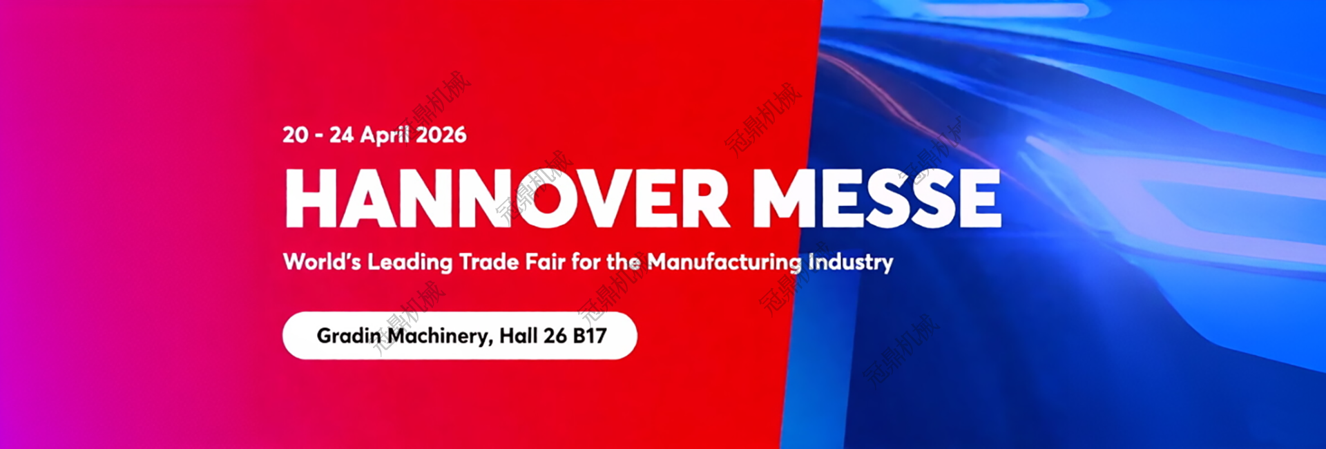 2026年4月20日至24日,德国汉诺威,Hall 26 B17号展位——冠鼎机械设备 期待您的光临。让我们相聚莱纳河畔,携手共创工业未来!